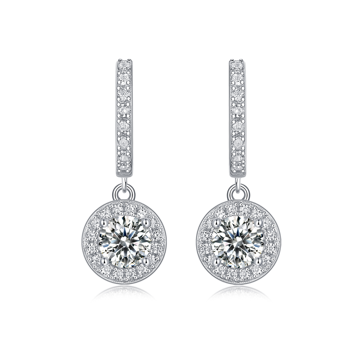 S925 Silver Color Double Chain Long Stick Micro Pave Zircon Round Pendant Necklaces For Women Trendy Jewelry