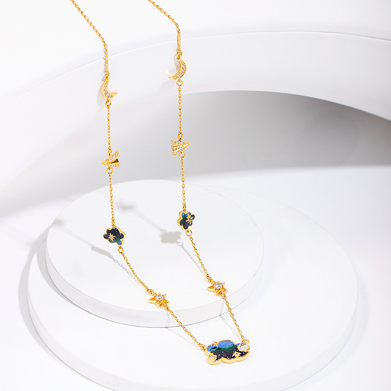 S925 Silver Color Double Chain Long Stick Micro Pave Zircon Round Pendant Necklaces For Women Trendy Jewelry